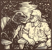 Sketch of poet John Lehman by artist Spencer Walts, from the back cover of Shrine of the Tooth Fairy. We’re celebrating the release of the ebook edition of John Lehman’s poetry collection, Shrine of the Tooth Fairy, first published by Cambridge Book Review Press in 1998 with illustrations and cover art by Spencer Walts. John stopped by for coffee this morning and we recorded him reading from the collection. Here’s “Clark Street Rag”: