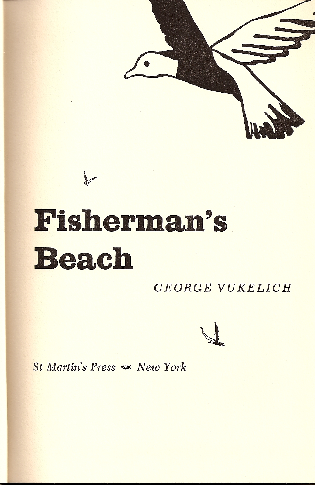 It seems likely that Vukelich, who died in 1995 at 67, had access to St. Martin’s original printer’s plates. There’s a striking use of pen and ink seagull silhouettes on the cover, title page and chapter headings, as well as a small fish icon beside each page number. It’s the kind of elegant layout and textual design that was common enough in 1962 when publishers had in-house graphic designers, but seems like a classical lost art form today.