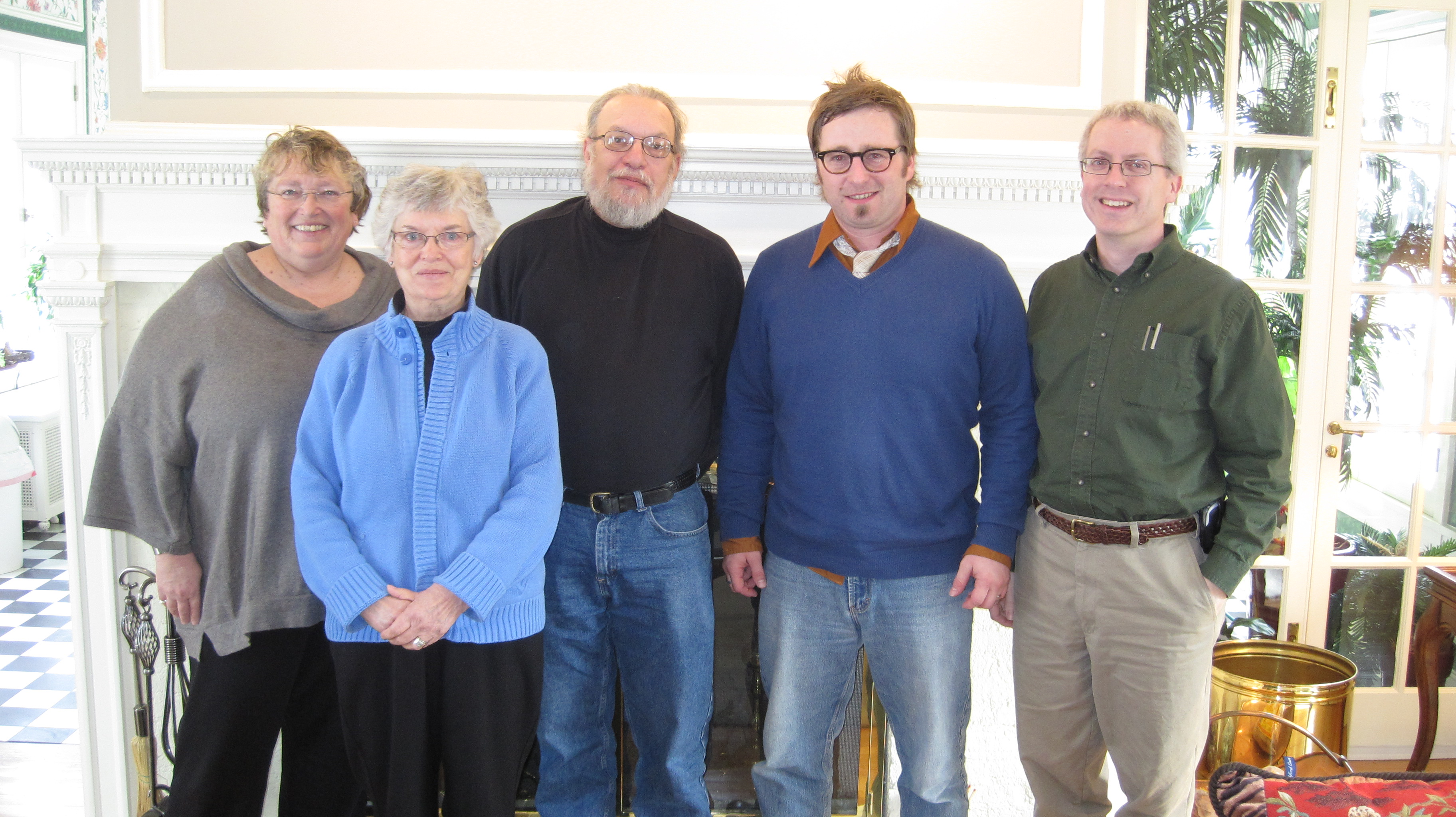 Left to right: Jerry and Paula Anderson (Echoes), B.J. Best (Arbor Vitae), Sarah Busse (Verse Wisconsin), Rod Clark (Rosebud), John Lehman (The Village Poet).